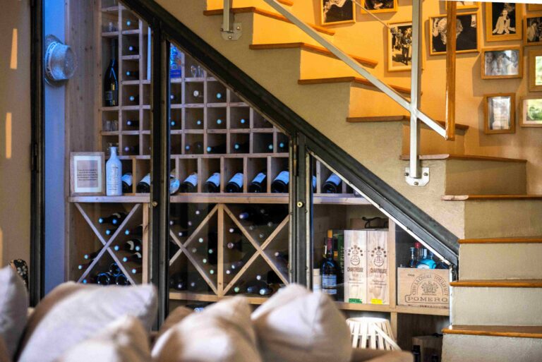 Pensée comme une cave de service, elle accueille les bouteilles prêtes à être dégustées, tandis que les grands crus restent conservés à l’abri, dans une cave traditionnelle.