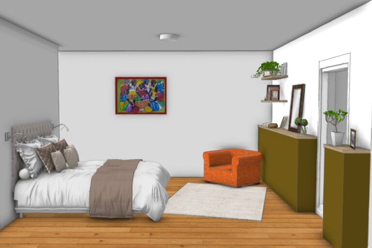 Ce projet illustre parfaitement qu’une réflexion adaptée permet d’optimiser des espaces atypiques, aussi bien dans une chambre parentale que dans une pièce destinée à accueillir des invités, en conciliant confort, praticité et cohérence d’ensemble.